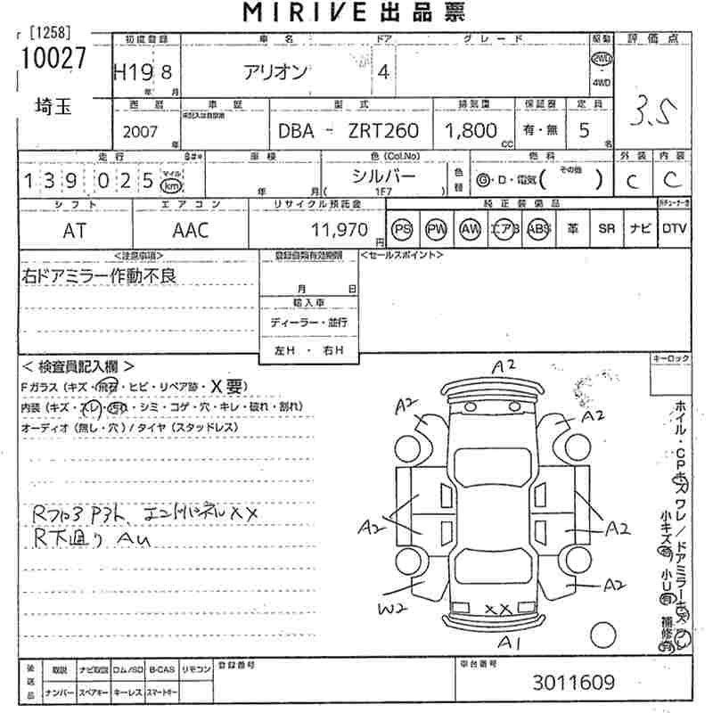 TOYOTA ALLION - лот 10027