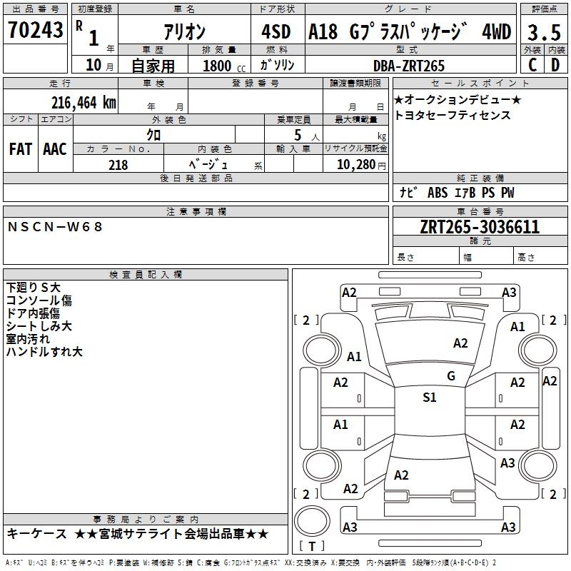 TOYOTA ALLION - лот 70243