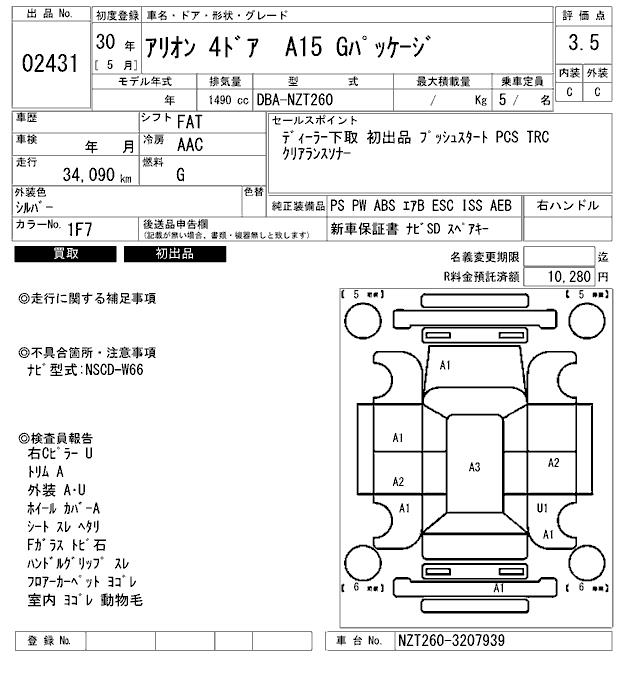 TOYOTA ALLION - лот 2431