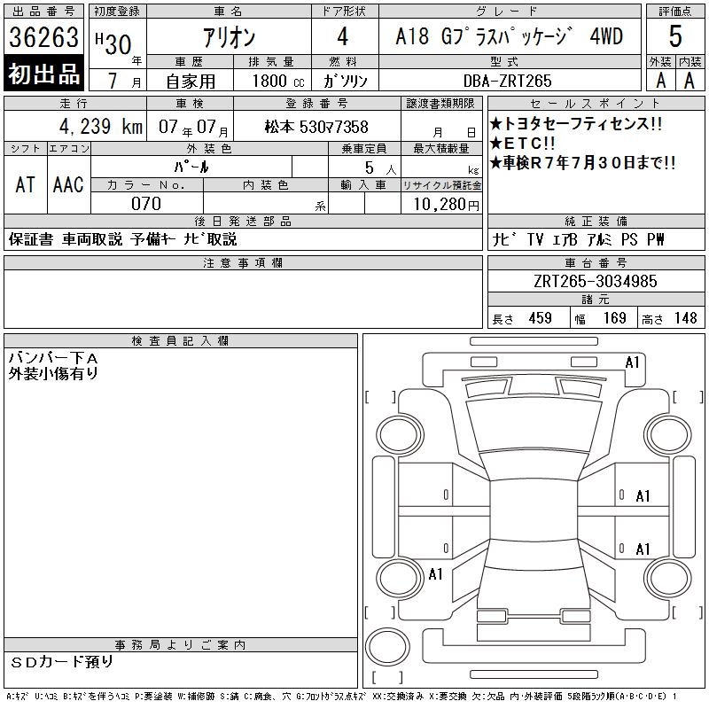 TOYOTA ALLION - лот 36263