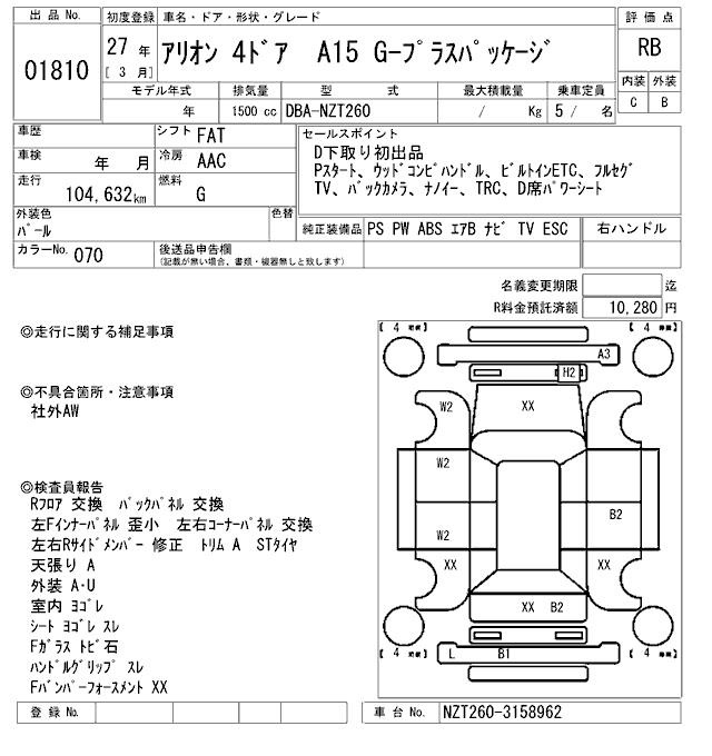 TOYOTA ALLION - лот 1810