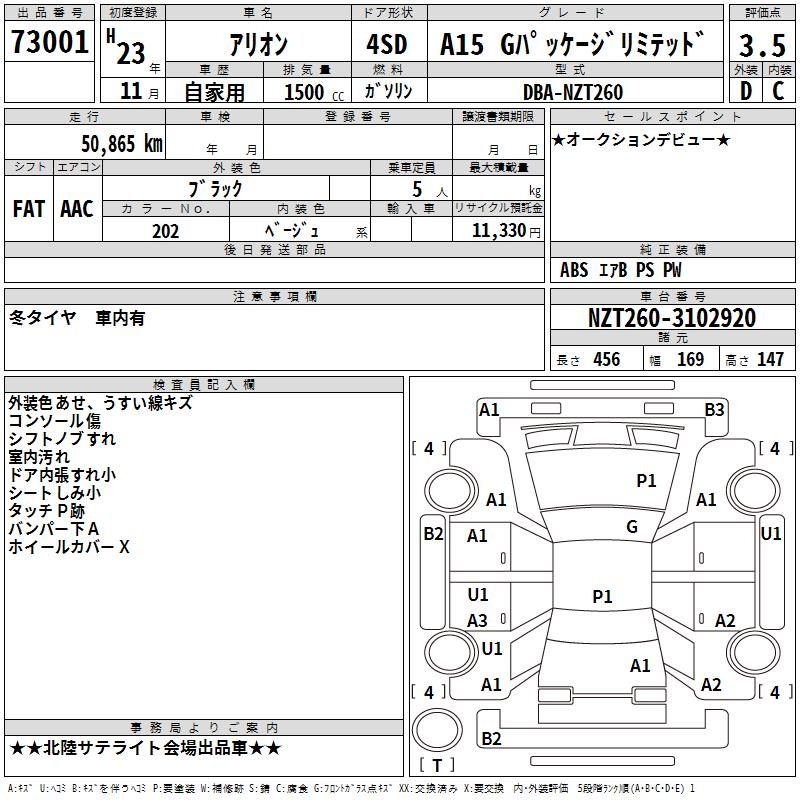 TOYOTA ALLION - лот 73001