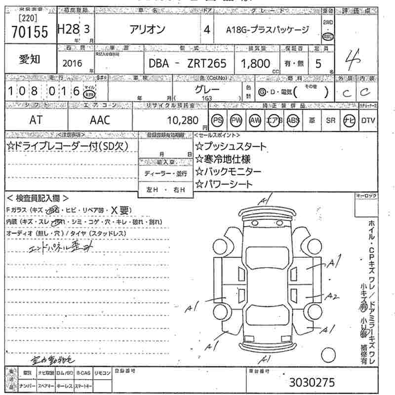 TOYOTA ALLION - лот 70155