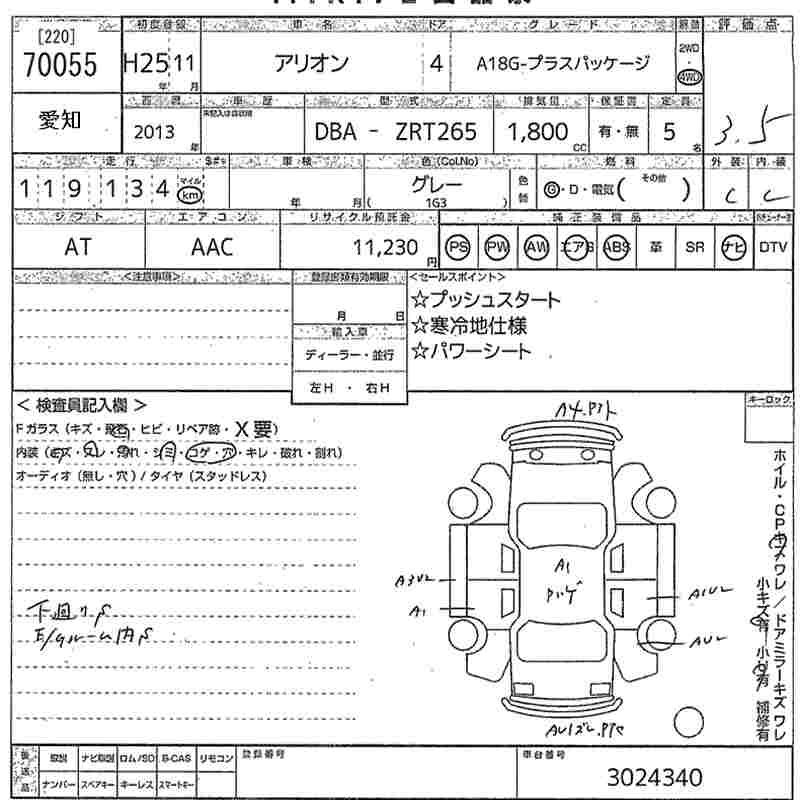 TOYOTA ALLION - лот 70055