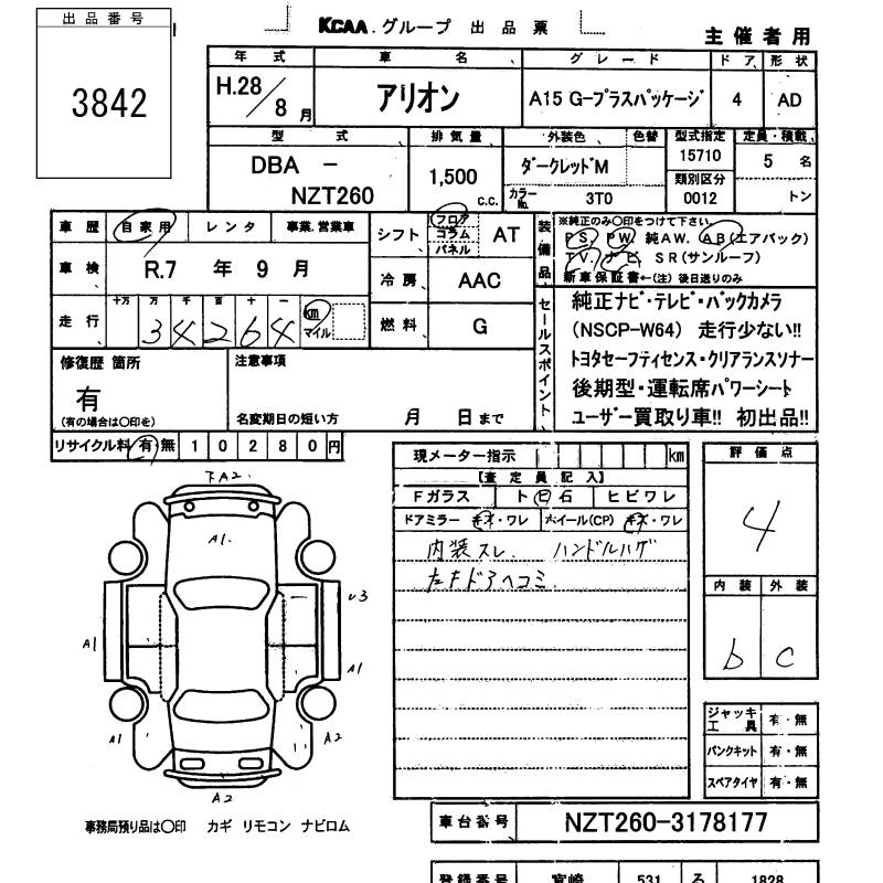 TOYOTA ALLION - лот 3842
