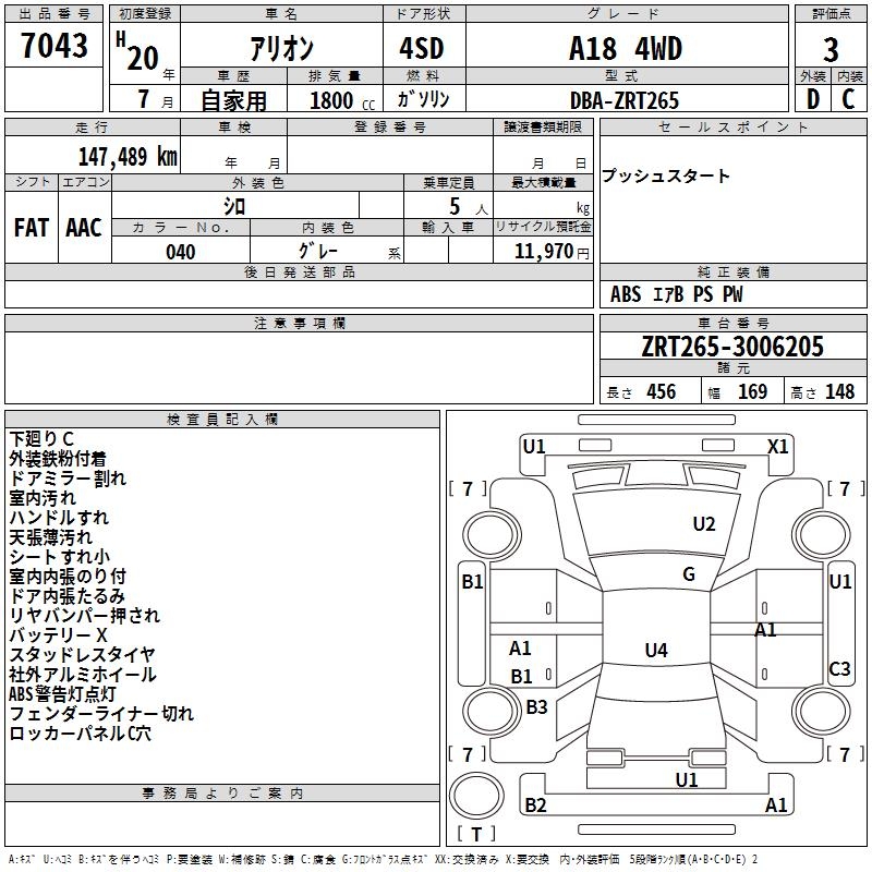 TOYOTA ALLION - лот 7043