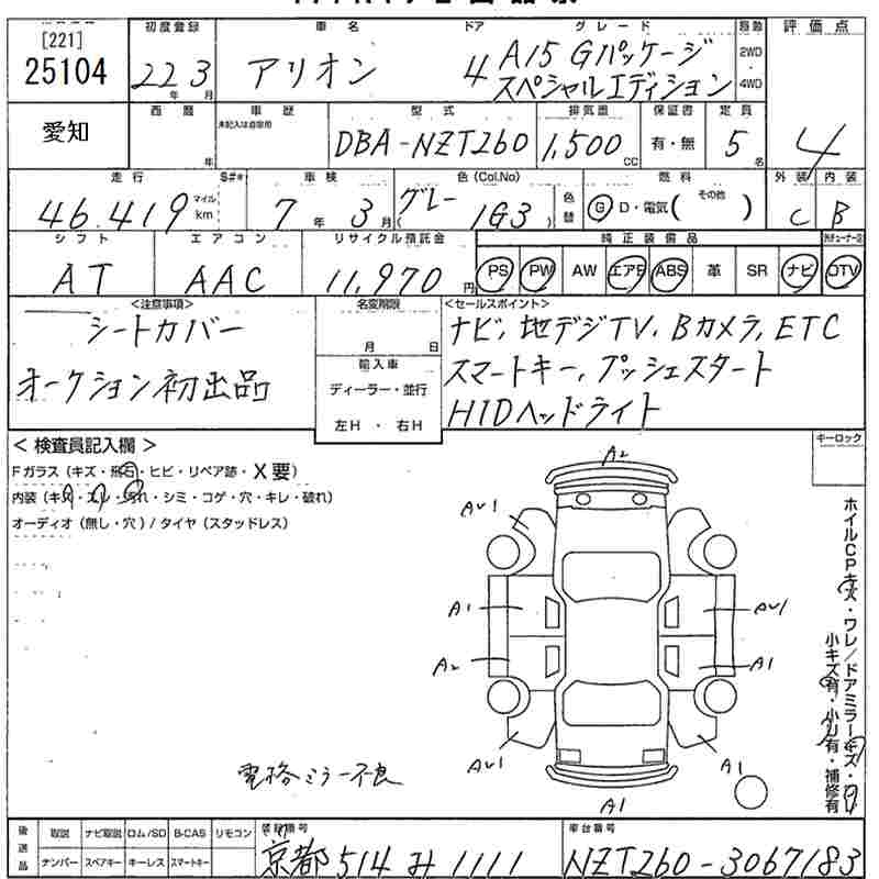 TOYOTA ALLION - лот 25104