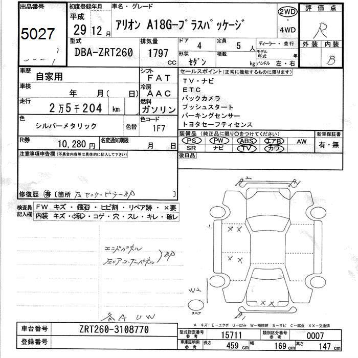 TOYOTA ALLION - лот 5027