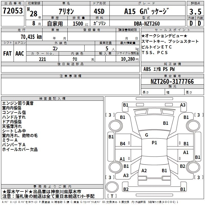 TOYOTA ALLION - лот 72053