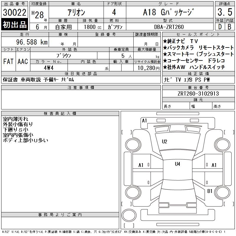 TOYOTA ALLION - лот 30022