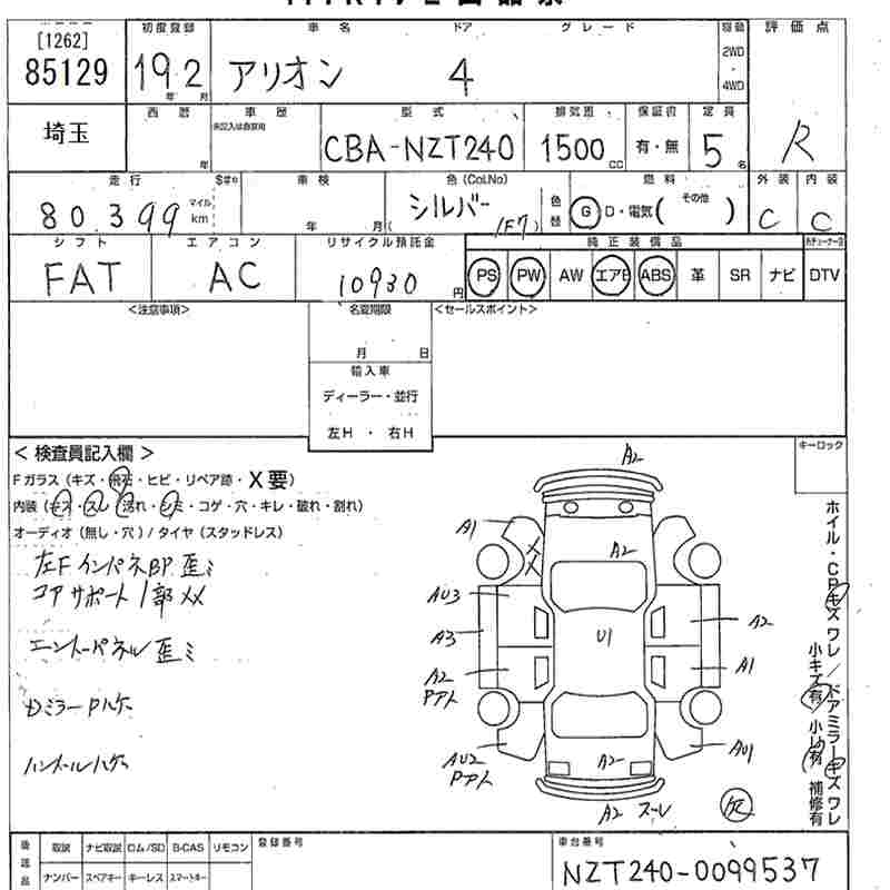 TOYOTA ALLION - лот 85129