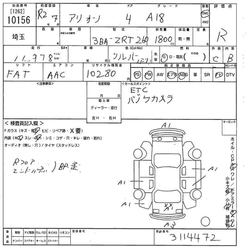 TOYOTA ALLION - лот 10156