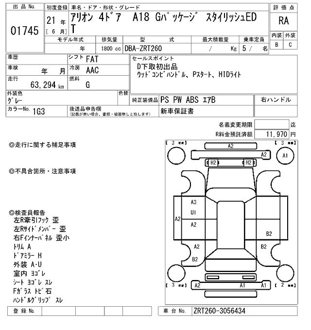 TOYOTA ALLION - лот 1745