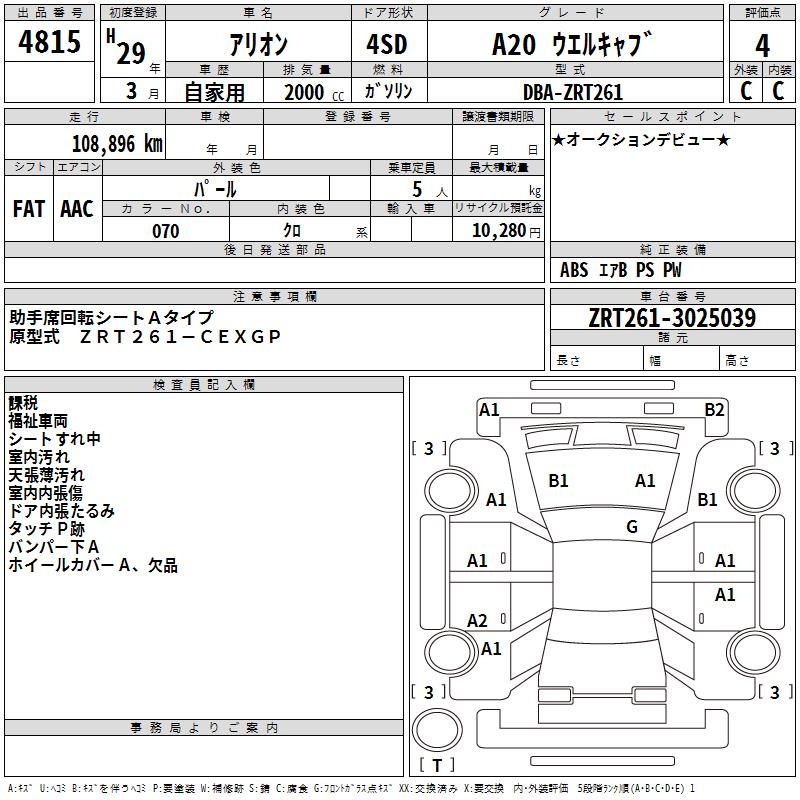 TOYOTA ALLION - лот 4815