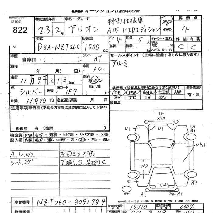 TOYOTA ALLION - лот 822