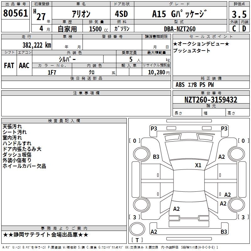 TOYOTA ALLION - лот 80561
