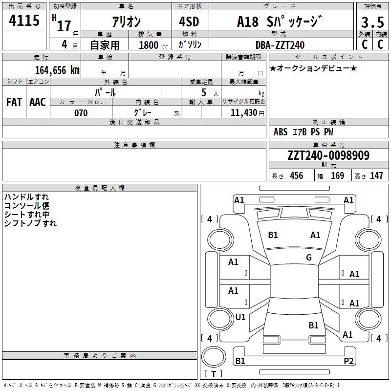 TOYOTA ALLION - лот 4115