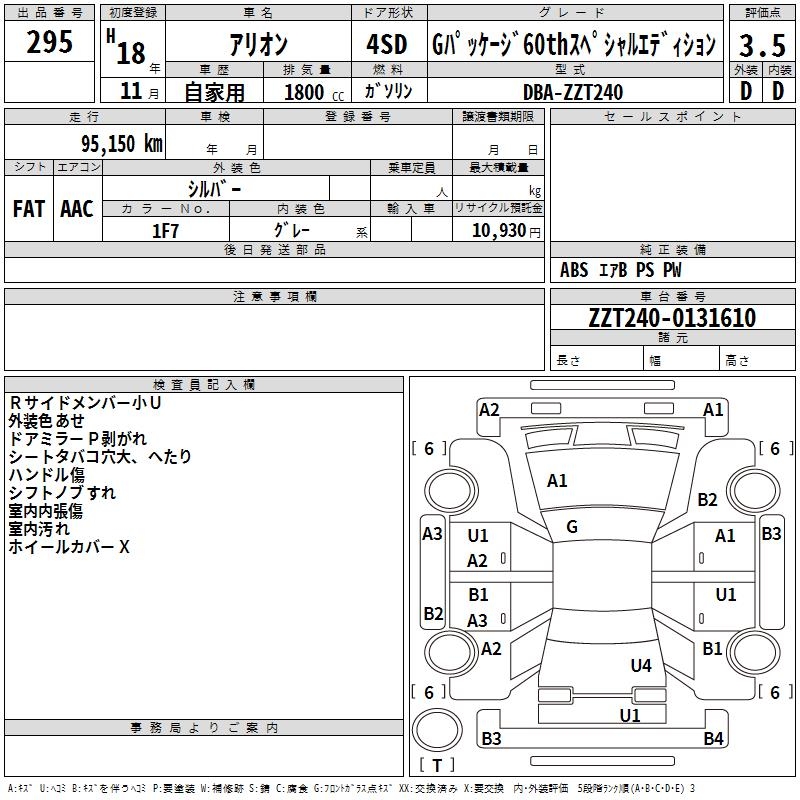 TOYOTA ALLION - лот 295
