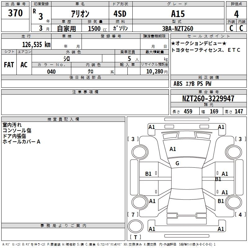 TOYOTA ALLION - лот 370