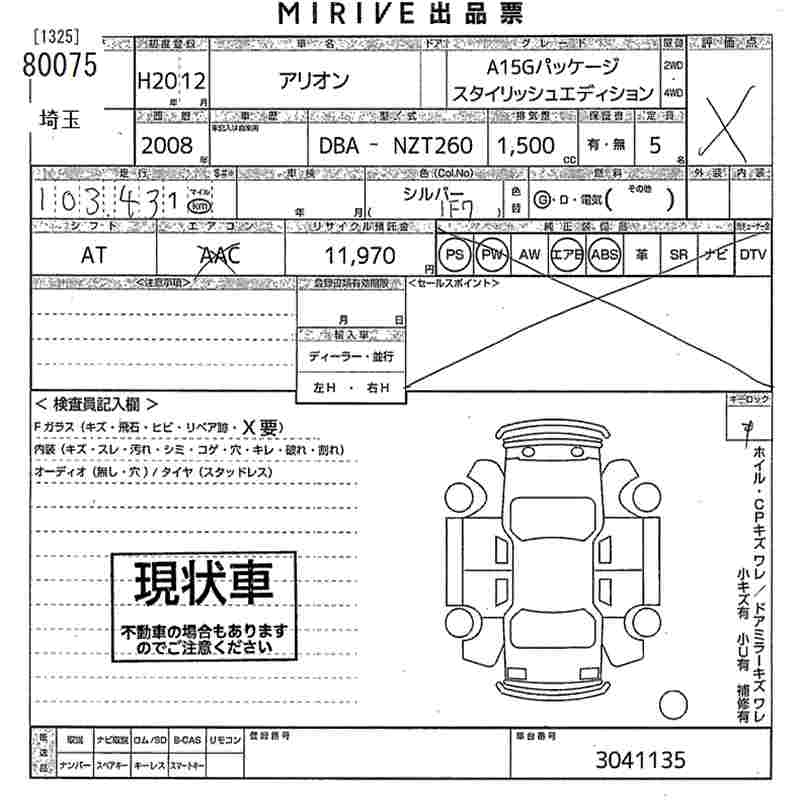 TOYOTA ALLION - лот 80075