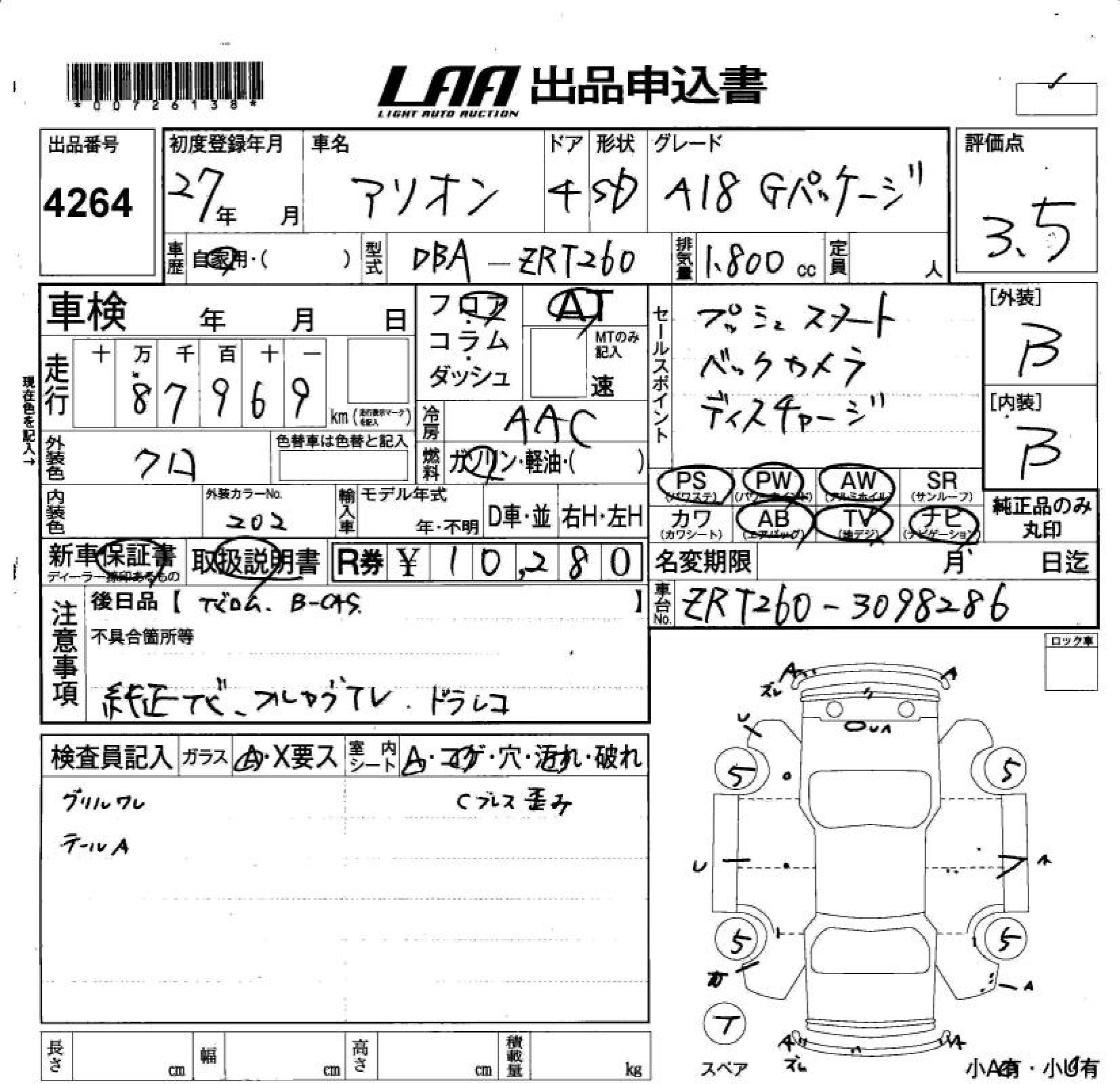 TOYOTA ALLION - лот 4264