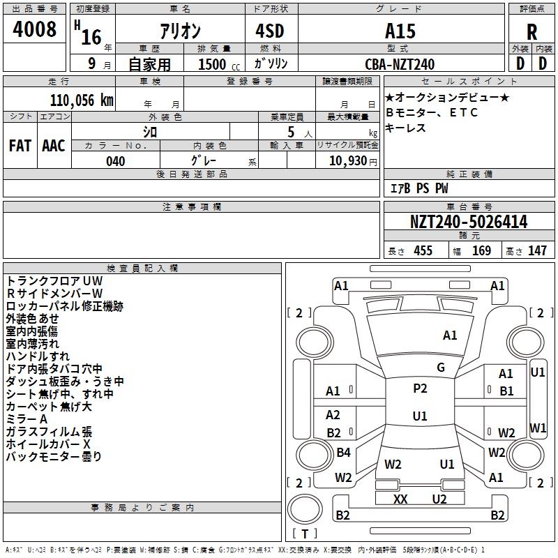 TOYOTA ALLION - лот 4008