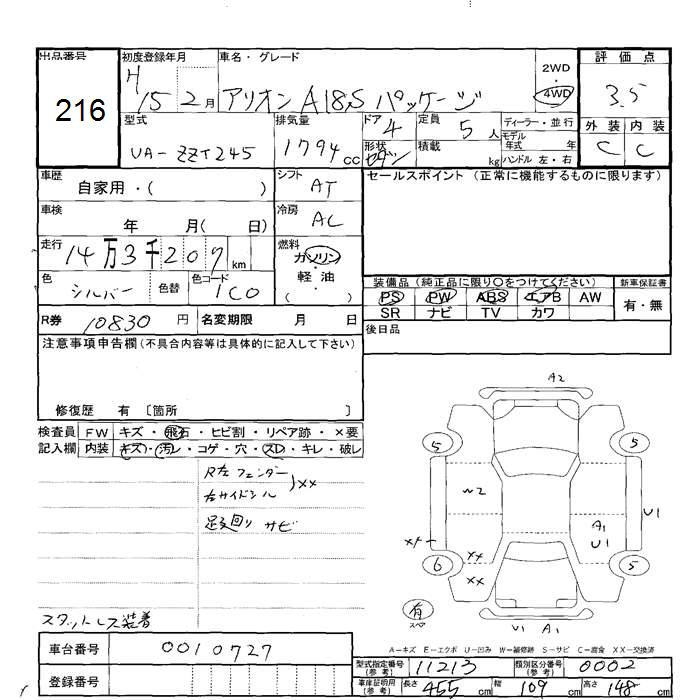 TOYOTA ALLION - лот 216