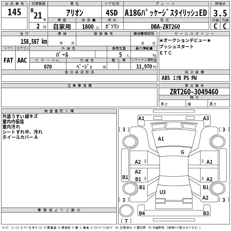 TOYOTA ALLION - лот 145