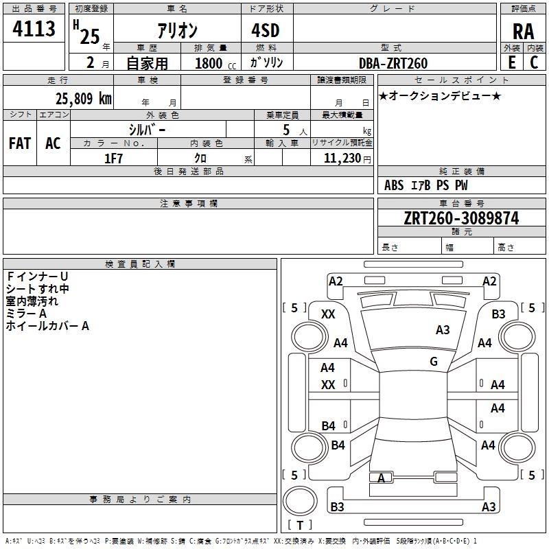 TOYOTA ALLION - лот 4113