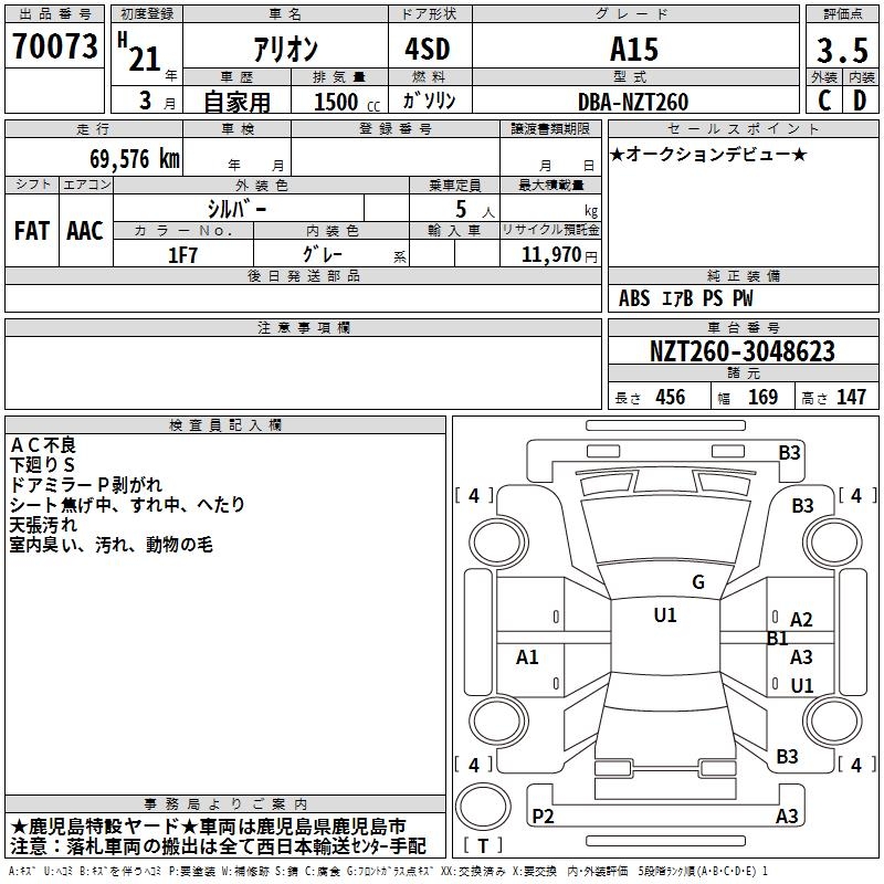 TOYOTA ALLION - лот 70073