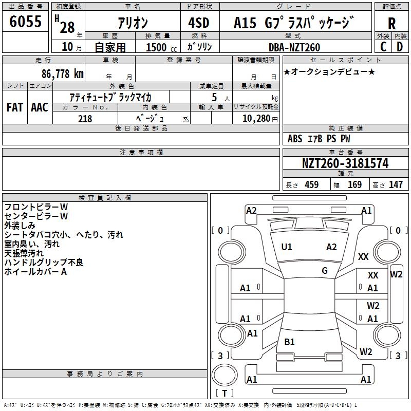 TOYOTA ALLION - лот 6055