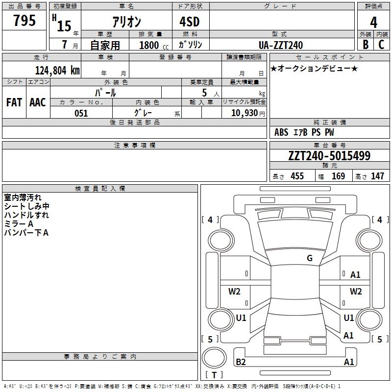 TOYOTA ALLION - лот 795
