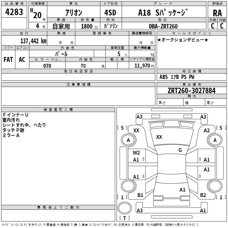TOYOTA ALLION - лот 4283