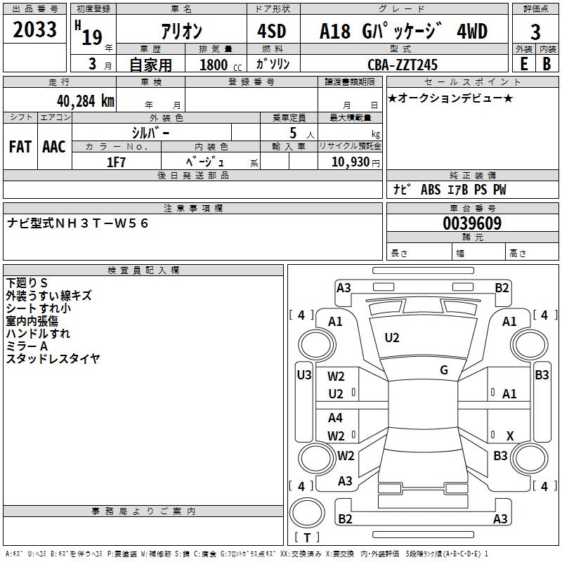 TOYOTA ALLION - лот 2033