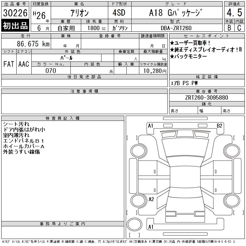 TOYOTA ALLION - лот 30226