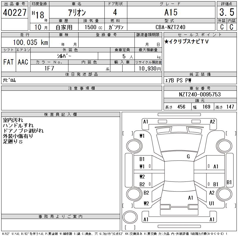 TOYOTA ALLION - лот 40227