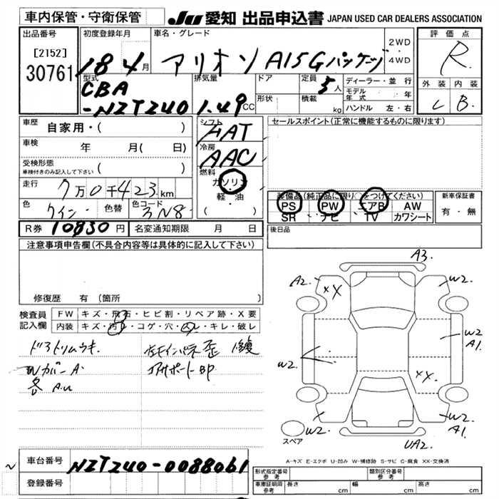 TOYOTA ALLION - лот 30761