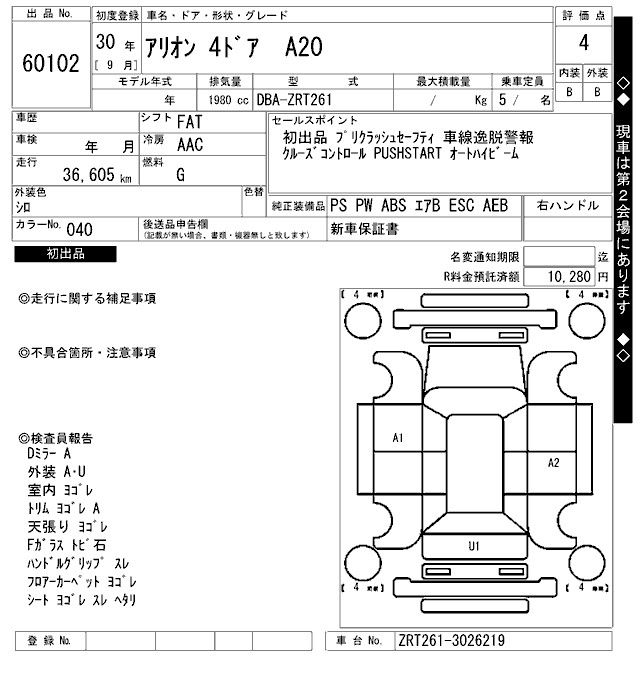 TOYOTA ALLION - лот 60102