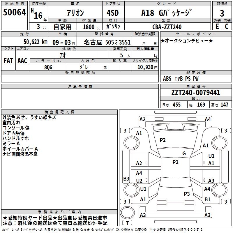 TOYOTA ALLION - лот 50064