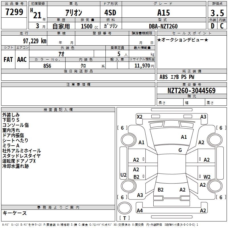 TOYOTA ALLION - лот 7299