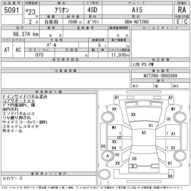 TOYOTA ALLION - лот 5091