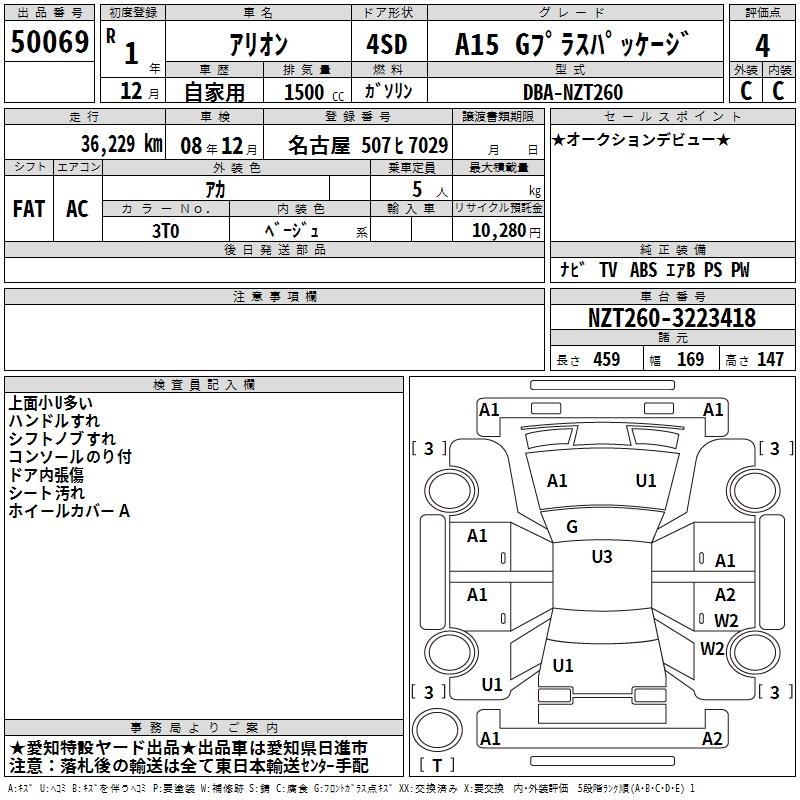 TOYOTA ALLION - лот 50069