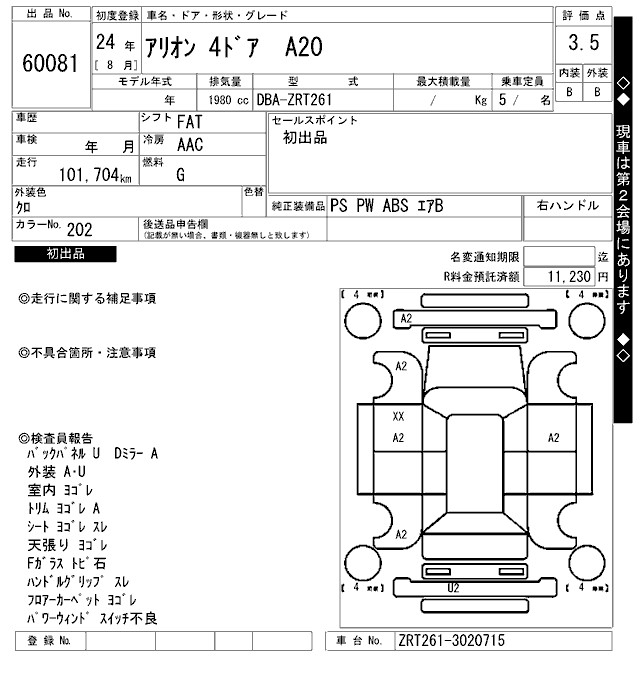 TOYOTA ALLION - лот 60081