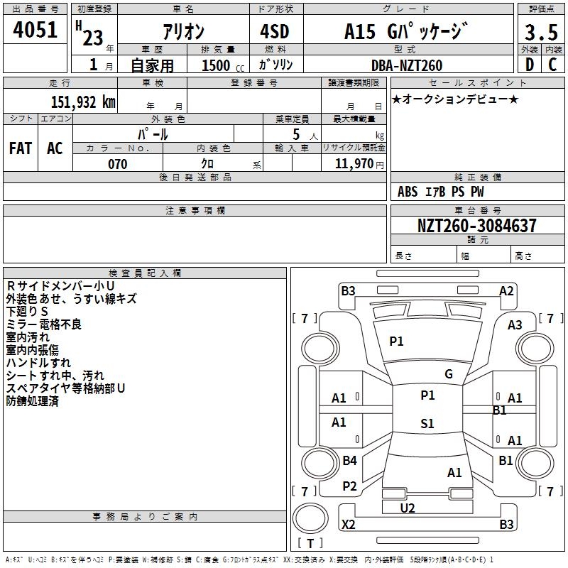 TOYOTA ALLION - лот 4051