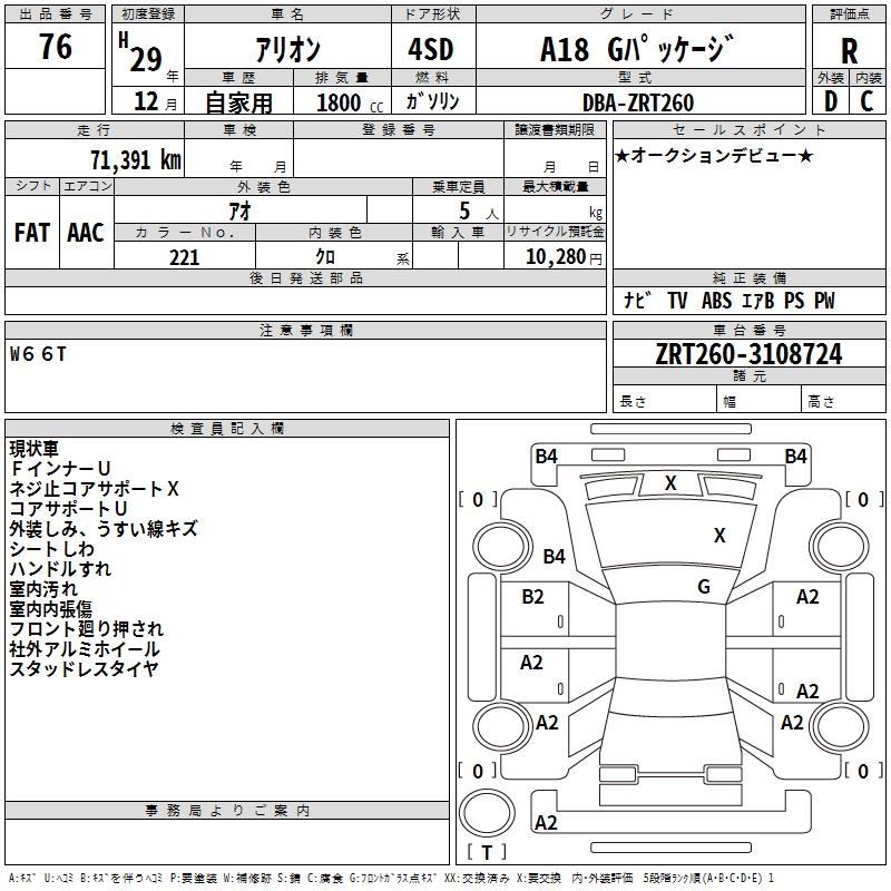 TOYOTA ALLION - лот 76