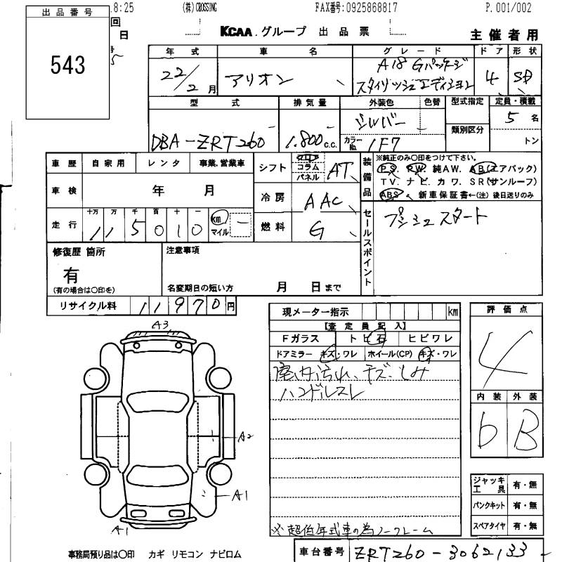 TOYOTA ALLION - лот 543