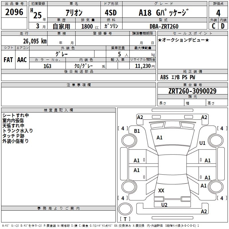 TOYOTA ALLION - лот 2096