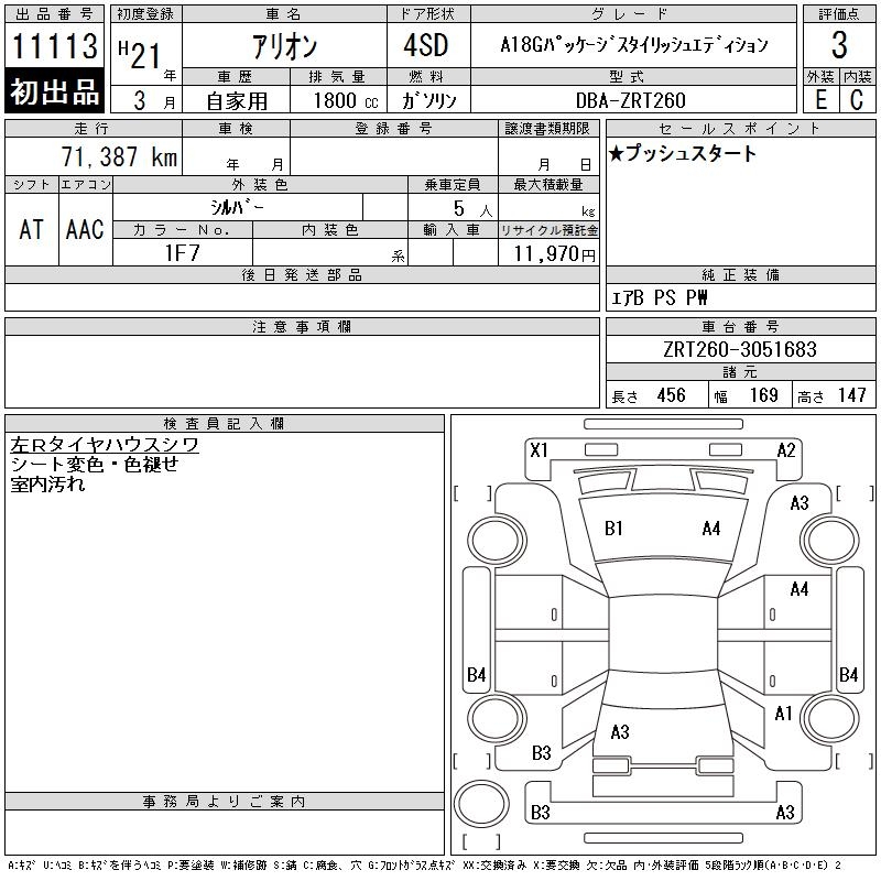 TOYOTA ALLION - лот 11113
