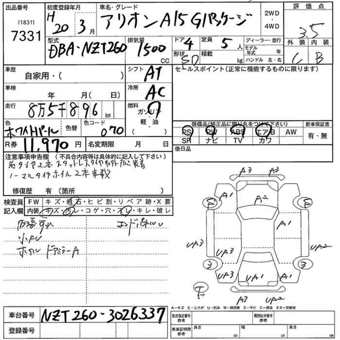 TOYOTA ALLION - лот 7331