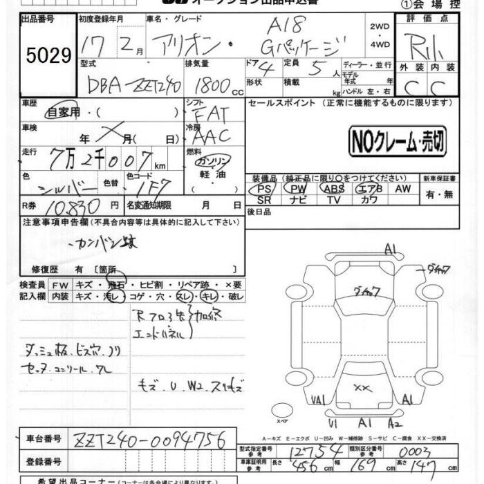 TOYOTA ALLION - лот 5029